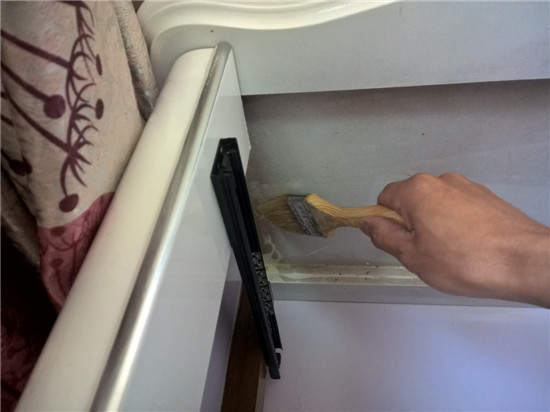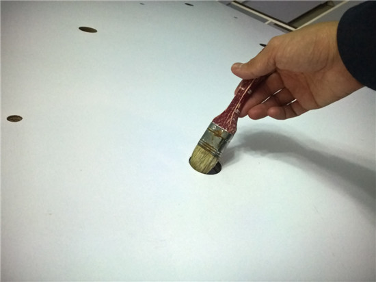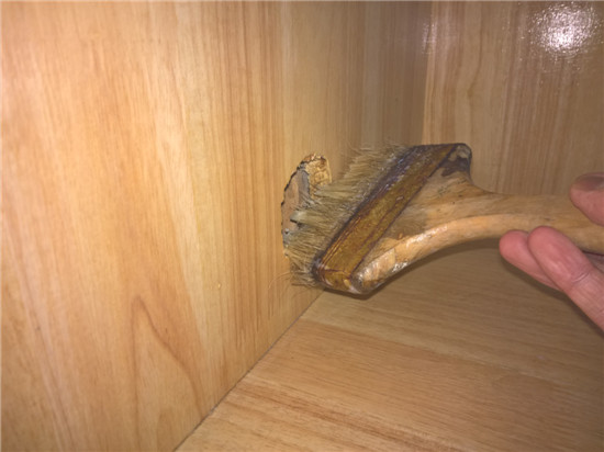 怎么使用呢?大家可以準(zhǔn)備一把寬的羊毛軟刷,將所有人造板材柜體清潔干凈后,用羊毛刷蘸“立美凈”除醛凈味雙效觸媒均勻地涂刷在內(nèi)柜體內(nèi)部(家具外表不需涂刷),抽屜內(nèi)外底板、床板及床頭后板等。對(duì)異味比較重的板材,待第一遍稍干了以后可再涂刷第二編,注意避免形成流淌,保持均勻即可。如下圖所示,釘眼、孔隙處都需要刷到。
