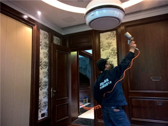 立美凈除甲醛公司技術人員在霧化噴涂光觸媒