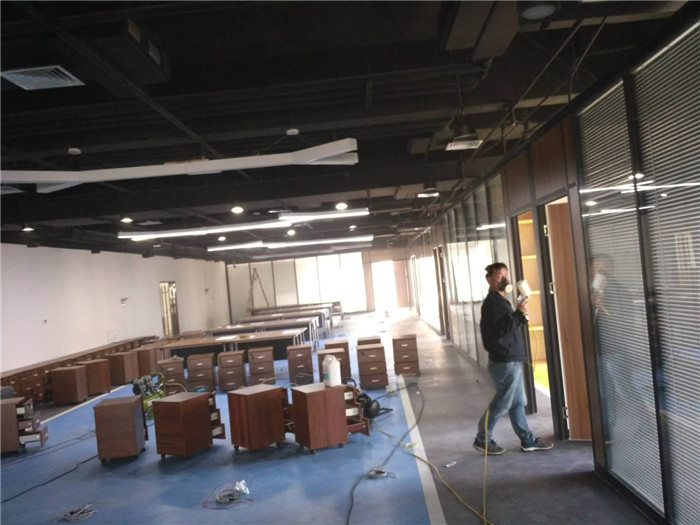 鑫苑中心5A甲級寫字樓除甲醛施工,2000平方辦公室空氣凈化治理施工。